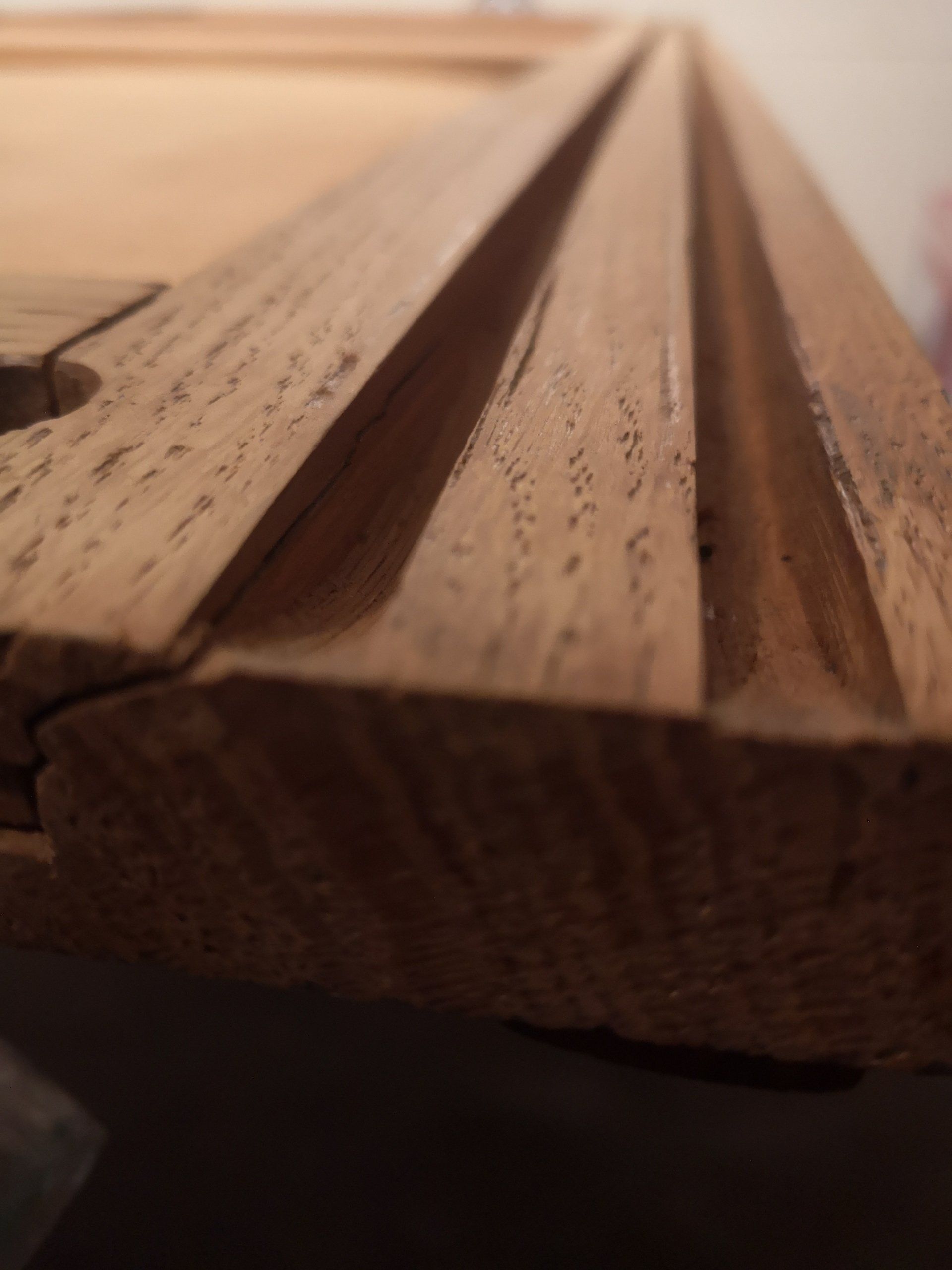 Elle a été nettoyée, poncée, restaurée, reponcée, apprêtée... Mise en peinture selon mon ou votre inspiration, huilée, cirée ou vernis !
